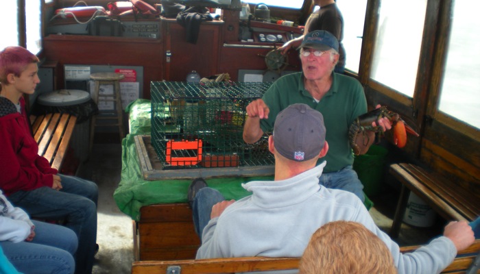 We went on a lobster boat called the Lively Lady. We learned a lot about lobsters, things that we never knew. It was really fun but we only got one lobster out of three traps. Then Mr. Philbrick, the man that owned the boat taught us so many things that I never knew. One of the things that I learned is that lobsters have no memory so they can walk into a trap, eat the food then forget where they are and how they got there. There was so much to learn about lobstering and so much I never knew. It was a great trip.